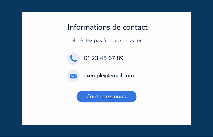 Toutes vos informations essentielles sont accessibles en un clin d’œil : téléphone, horaires d’ouverture, email.