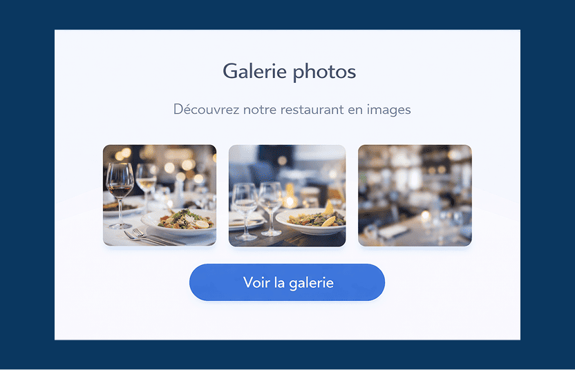 Mettez en valeur vos plats et l’ambiance de votre restaurant grâce à une galerie photos.