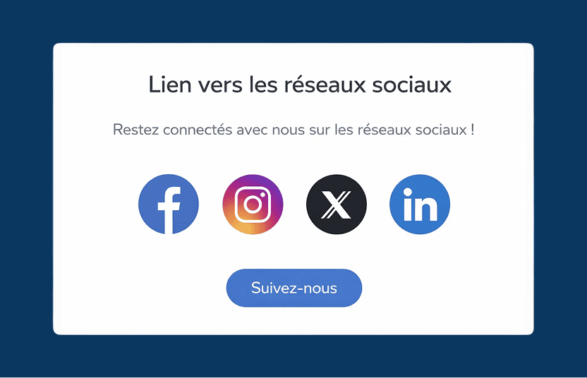 Vos réseaux sociaux sont directement intégrés à votre site pour renforcer votre visibilité en ligne.